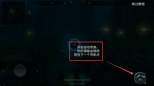 4、如何自动航行?点击“开启自动驾驶”,潜艇将自动前往下一导航点。