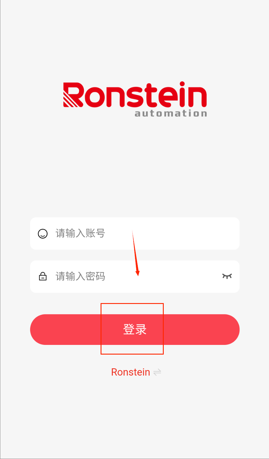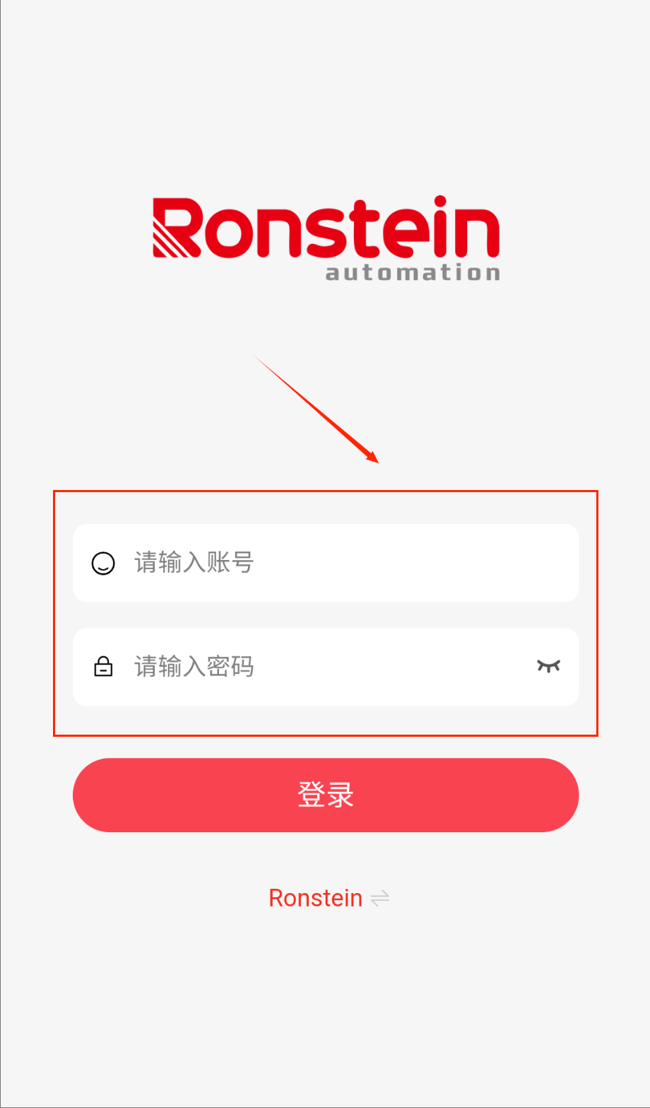 1、 打开软件就看到灰色背景的登录界面啦,最上方红色"Ronstein automation"标志特别醒目呢,下方两个白色输入框整整齐齐排列着。