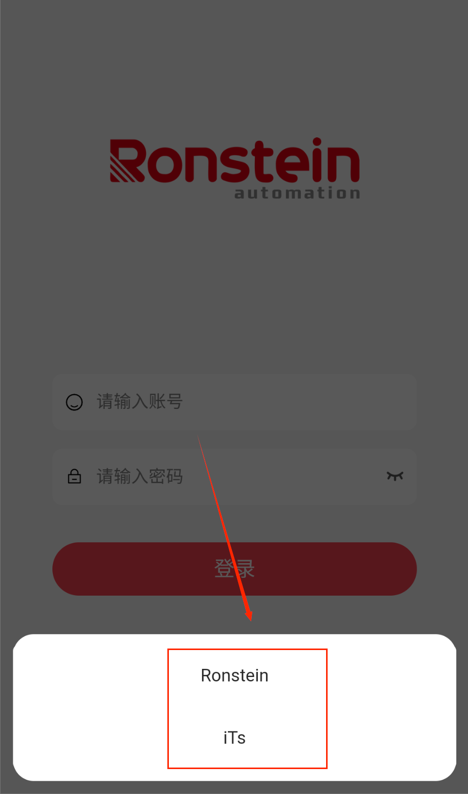 4、 确认账号密码都填对后,点击最下方那个显眼的红色"登录"按钮就行啦,底部还有"Ronstein iTs"的白色小字,整个登录过程两三步就搞定哟。