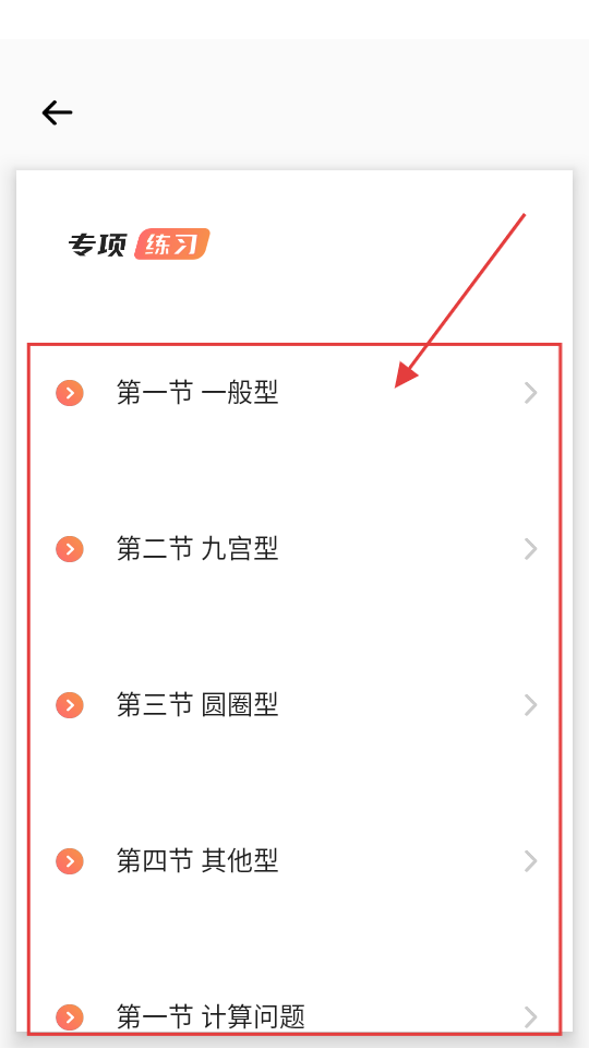 2、专项练习页有一般型、九宫型等题型,选要练习的题型,开启专项训练,提升答题能力。