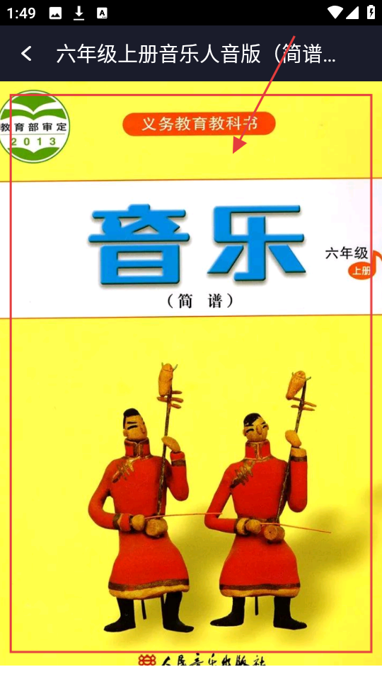 3、选好课本后,能查看课本内容,像六年级上册音乐人音版(简谱)课本,尽情浏览学习。