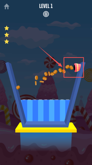 2、操作填充糖果:通过简单点击或拖动操作,将糖果投入场景中的容器,观察容器空缺位置,调整投放角度确保填满。