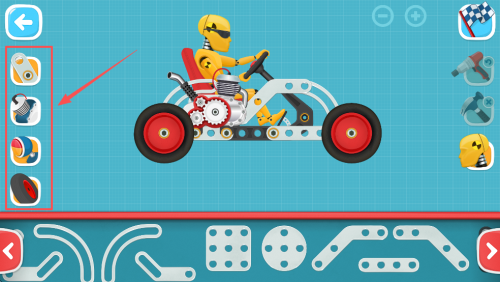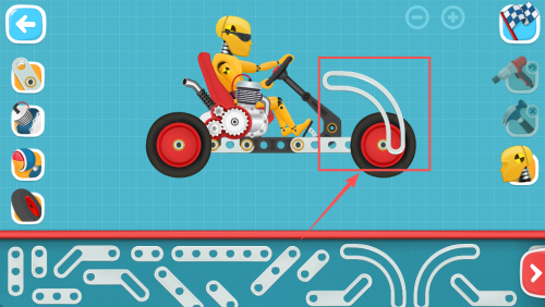 2、接着,从下方的工具栏中选择并拖动合适的部件到车辆上进行组装。