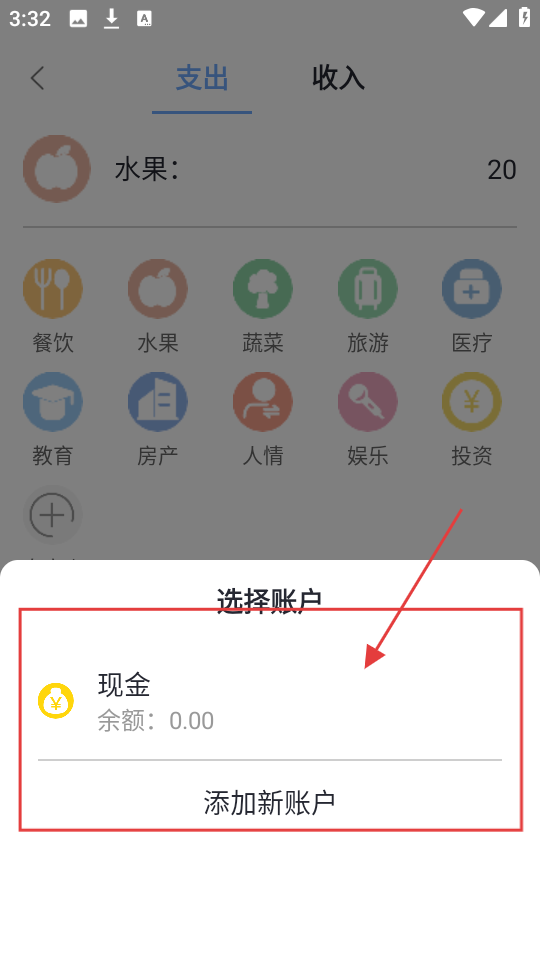 3、选账户时,可挑现金账户,也能【添加新账户】,选好后,支出记录就关联好账户啦。