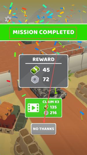 1、如何领取奖励?任务完成后点击“MISSION COMPLETED”界面右侧“AIM×3”领取135或216奖励,也可点“NO THANKS”跳过。