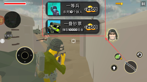 2、如何领取杀敌奖励?完成“杀死10个敌人”后点击“+2500”即可领取等兵奖励。