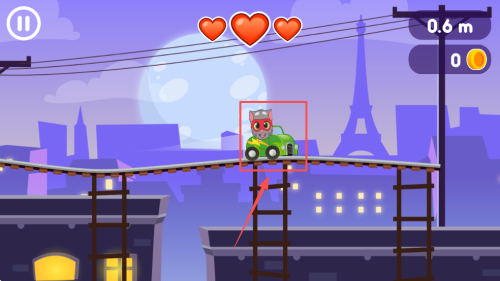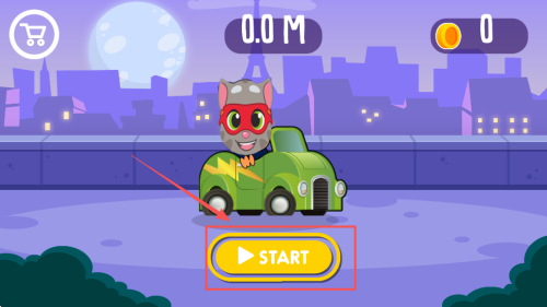 1、开启跑酷之旅:进入游戏熟悉规则,明确 “控小车、集金币、冲远距” 的目标,选择初始卡通猫角色,开启驾车跑酷挑战。
