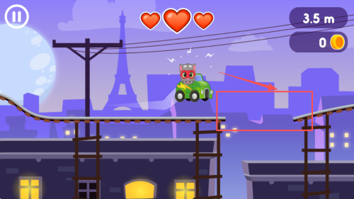 1、角色萌趣独特:以卡通猫为核心角色,搭配小车驾驶设定,形象鲜活可爱,跑酷过程充满萌感,吸引喜欢萌系风格的玩家。