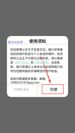 1、首先,阅读并同意使用须知,点击“同意”按钮以继续游戏。