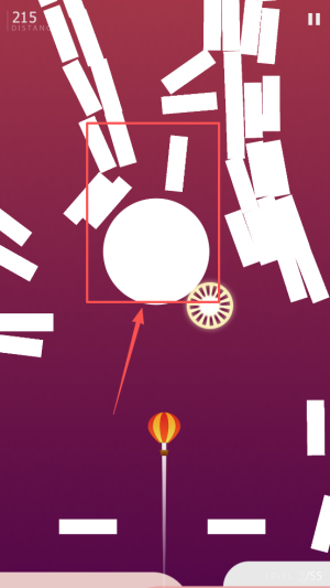 2、接着,通过拖动屏幕上的热气球来避开障碍物,控制其飞行方向。