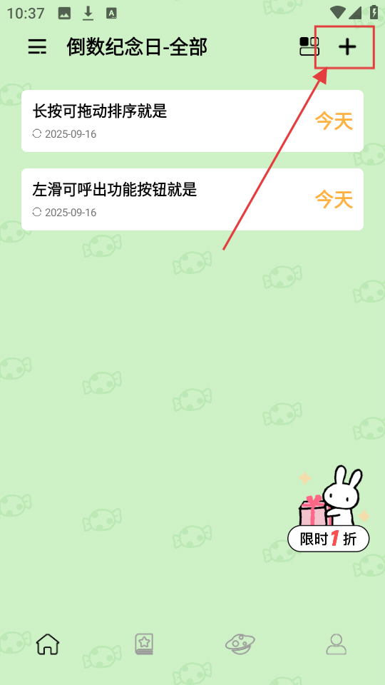 1、倒数纪念日页面,想添加新纪念日的话,点右上角【+】按钮,就能进入新建页面咯。