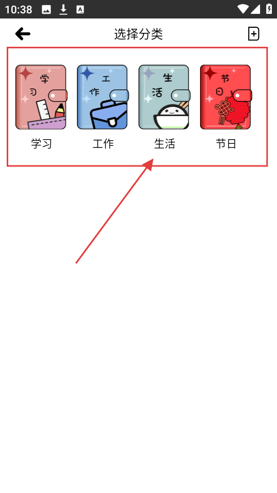 3、选择分类页面,有【学习】【工作】等分类,挑个合适的分类,就能给事件归类啦。