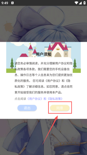 1、首先,阅读用户须知并点击“同意”按钮以接受条款并继续。