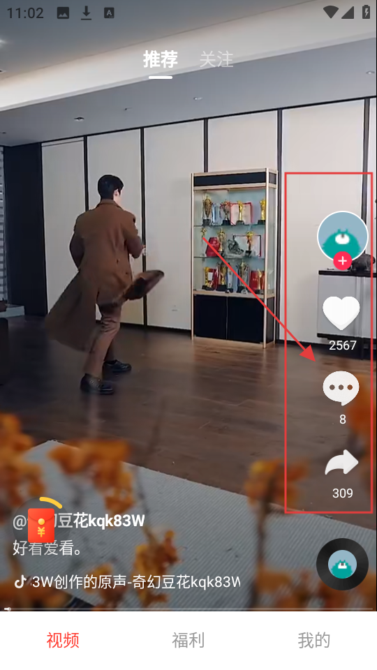 1、刷视频时,看到右侧评论图标,点它就能进入评论区,和其他用户交流互动,可有意思啦。