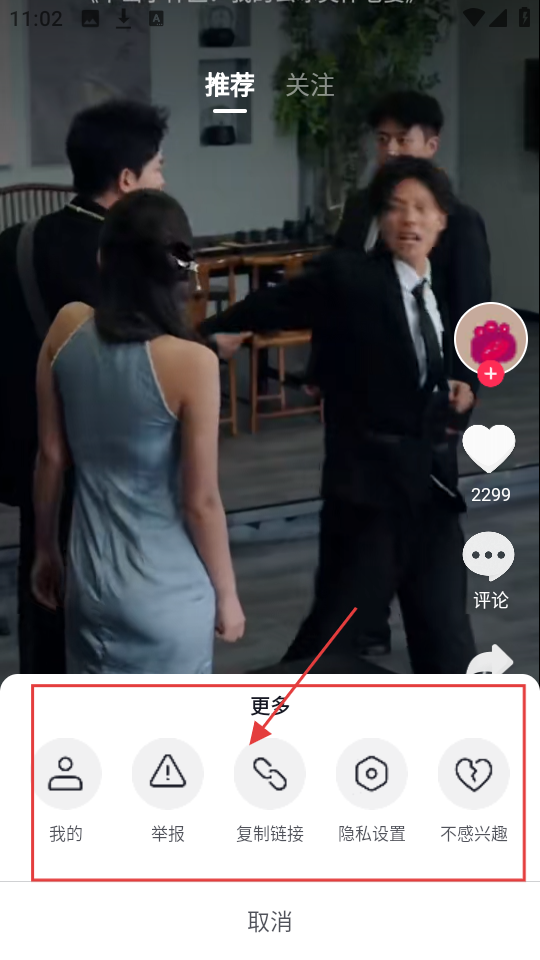 3、若想分享视频,点更多选项里的【复制链接】,就能把视频链接分享给好友,很方便哟。