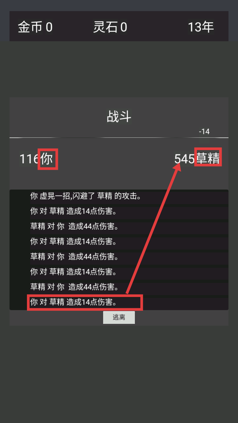 3、战斗时与【草精】对抗,可对其造成14点伤害,但也要承受其44点伤害,注意攻防节奏。