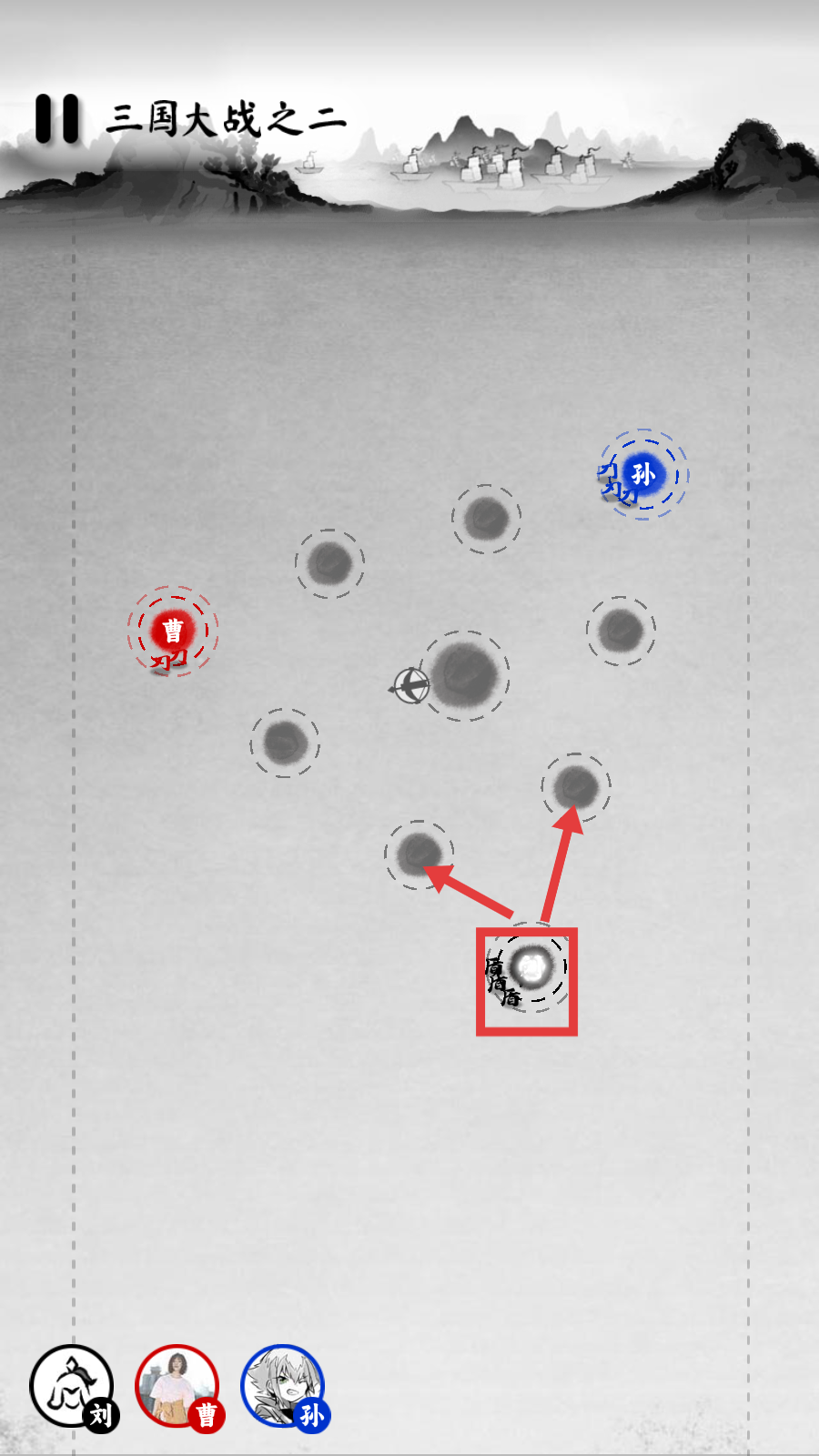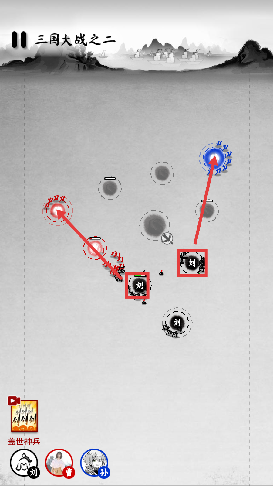 3、操控“刘”势力单位,向“曹”“孙”等敌方据点发起进攻,争夺战场控制权,削弱敌方力量。