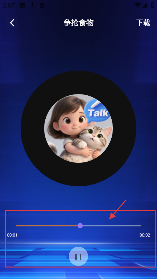4、播放猫咪情绪声音时,能看到播放进度条,还能暂停、下载,超方便。