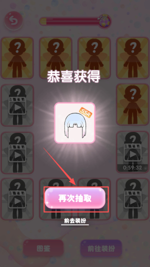 4、最后,点击“再次抽取”按钮以获取更多装扮。
