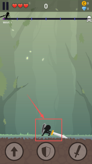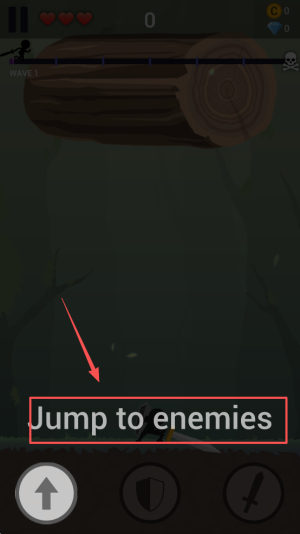 3、跳跃攻击敌人。点击跳跃按钮跳向敌人进行攻击。