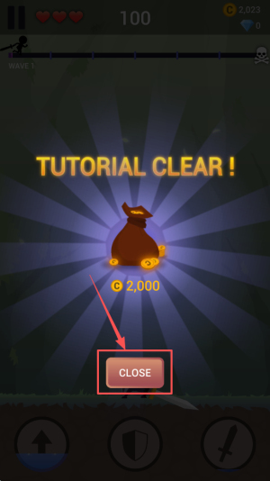 4、完成教程领取奖励。点击“CLOSE”关闭教程,获得金币。