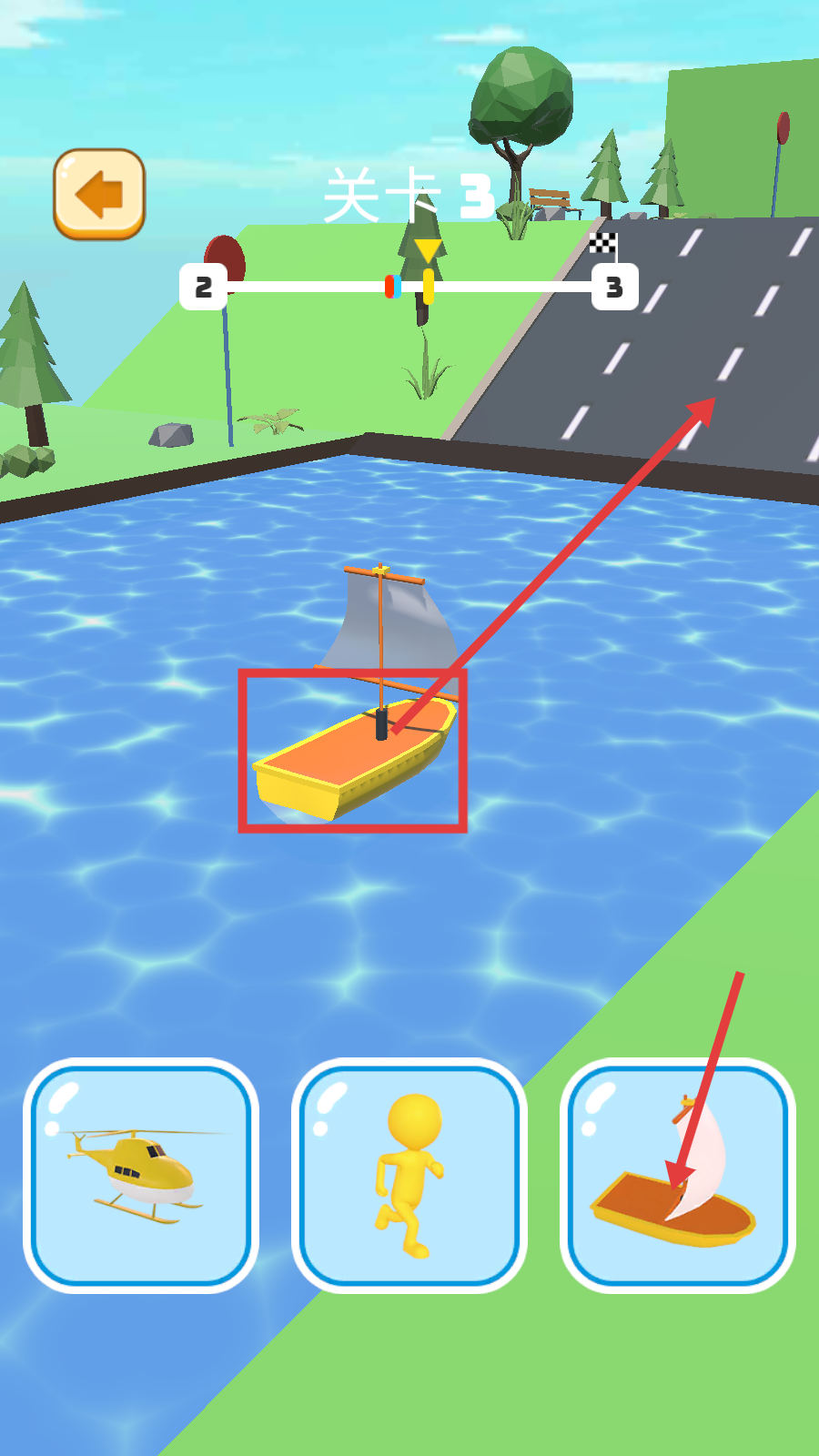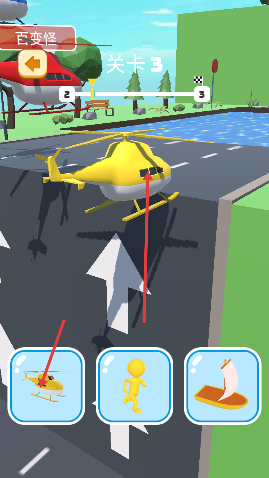 2、在【关卡3】中,选用【直升机】载具,沿着箭头指引的道路前进,跨越地形障碍。