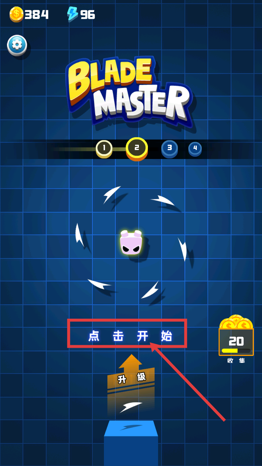 1、在《BladeMaster》游戏界面,点击【点击开始】,进入关卡挑战,开启战斗冒险。