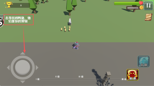 3、如何寻找食物?根据提示“去寻找鸡鸭兔”,靠近它们即可自动收集作为食物补给。