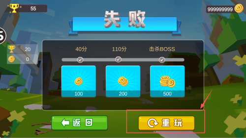 4、如何重玩挑战?失败后点击“Q重玩”即可重新开始挑战,争取更高分数。