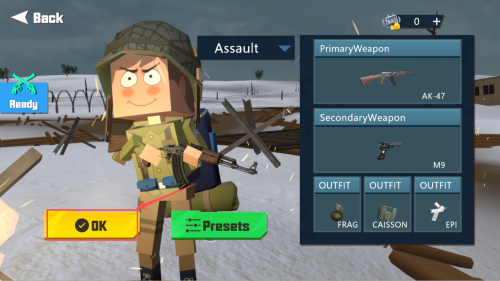 3、如何快速配装?点击“Presets”选择“Assault”预设,一键完成主副武器与外观配置。
