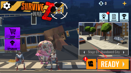1、如何进入战场?点击“Stage 01 Abandoned City”下方“READY”即刻开战。