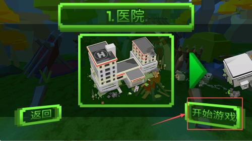 2、如何进入关卡?点击“1.医院”关卡,按“开始游戏”即可载入场景。