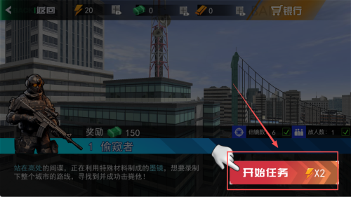 2、如何开始行动?阅读任务描述后点击“开始任务”,使用“FX2”倍镜狙击。