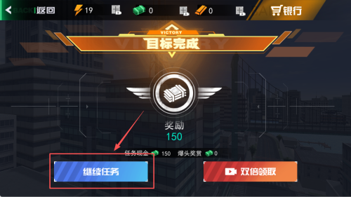 4、如何领取奖励?击毙目标后点击“继续任务”,选择“双倍领取”获得300奖励。