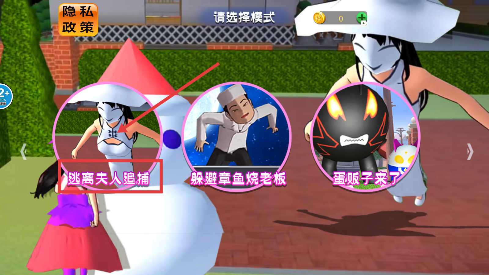 1、进入游戏后,选择【逃离夫人追捕】模式,开启躲猫猫类的游戏挑战。
