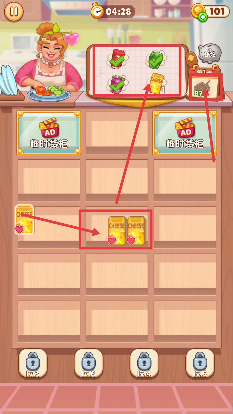 3、持续关注食材需求,收集并整理芝士等食材,推进当天任务进度,提升完成度。