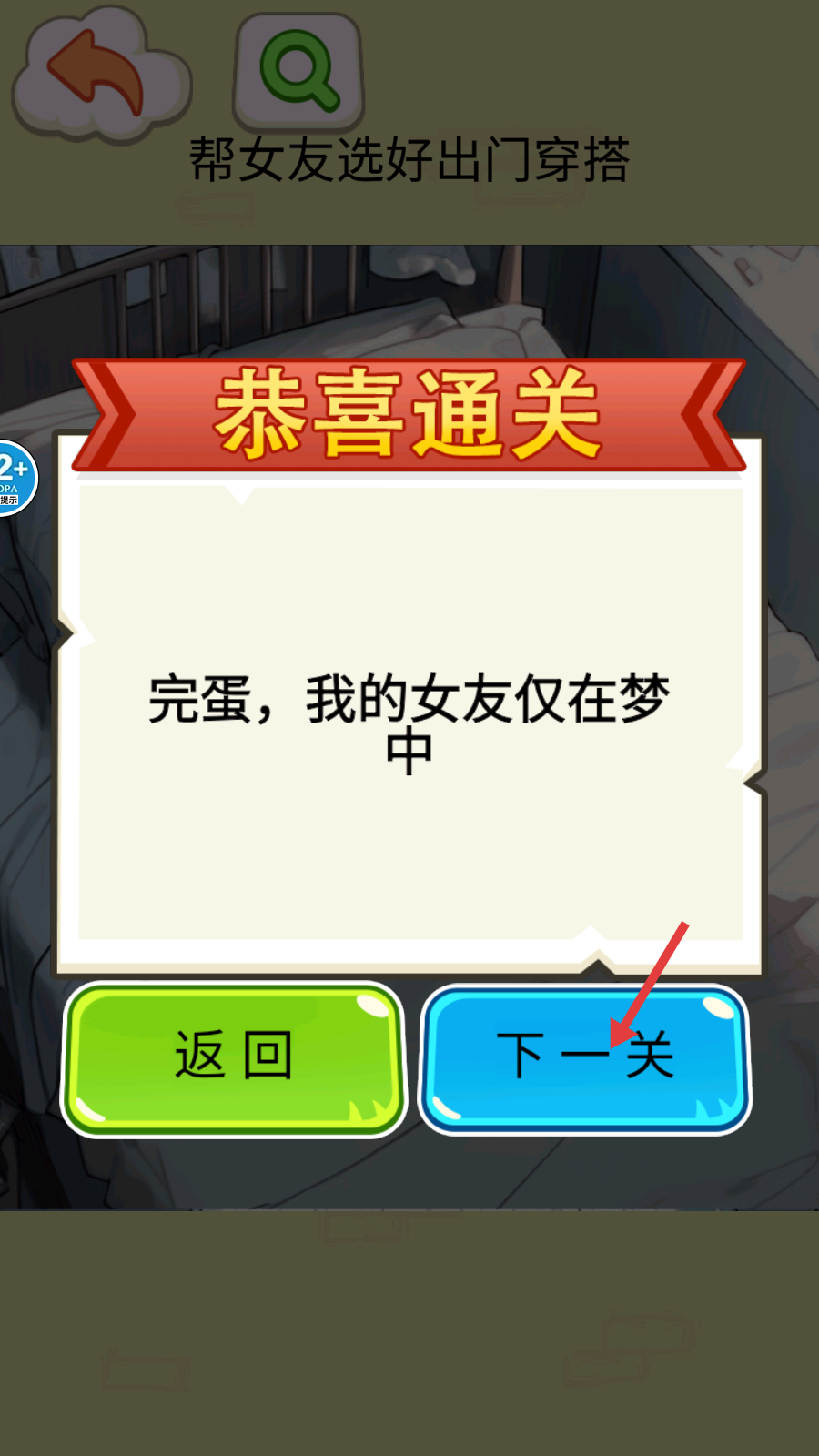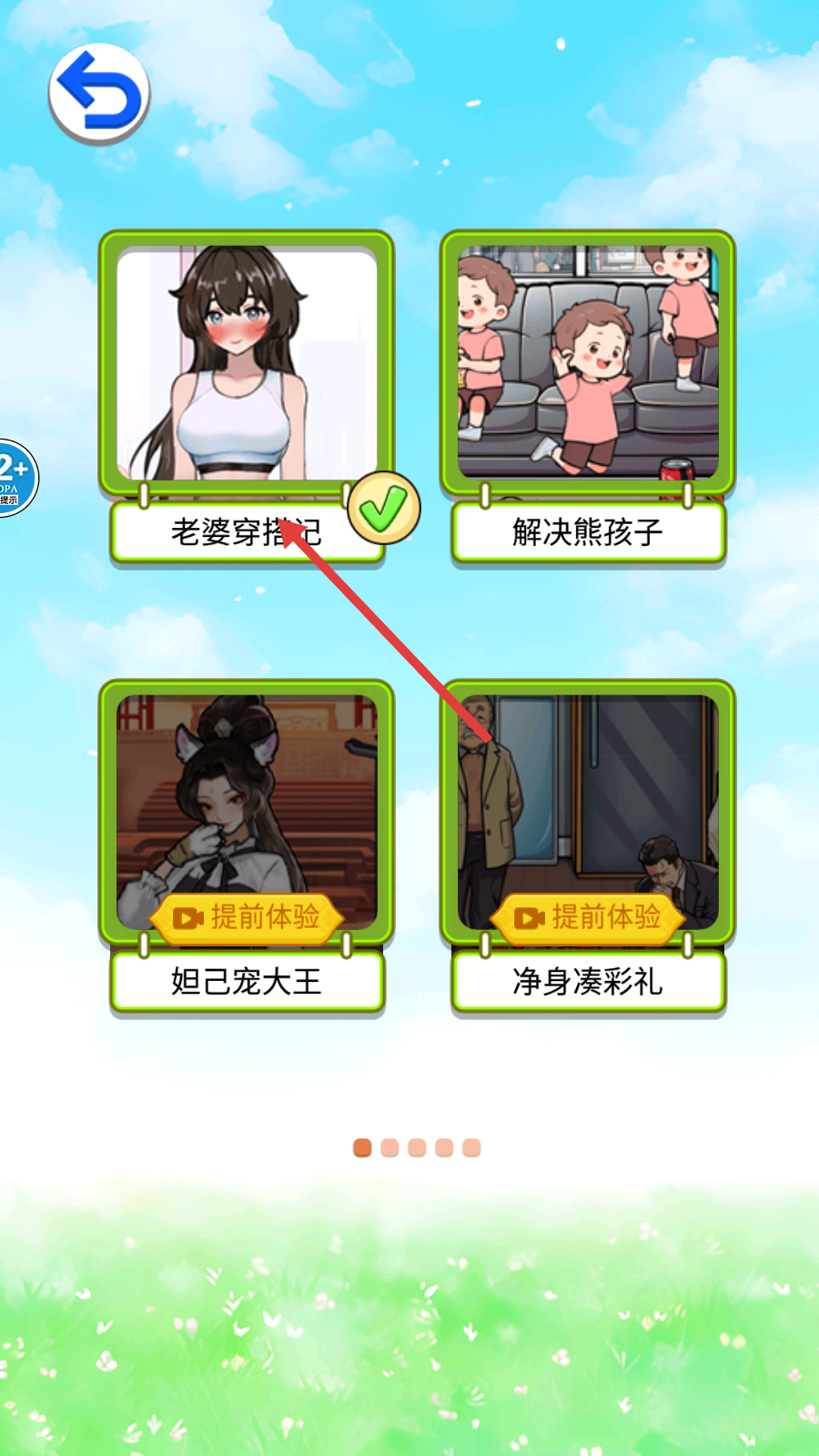 1、选择【老婆穿搭记】关卡,进入帮女友挑选出门穿搭的挑战,开启趣味穿搭选择之旅。