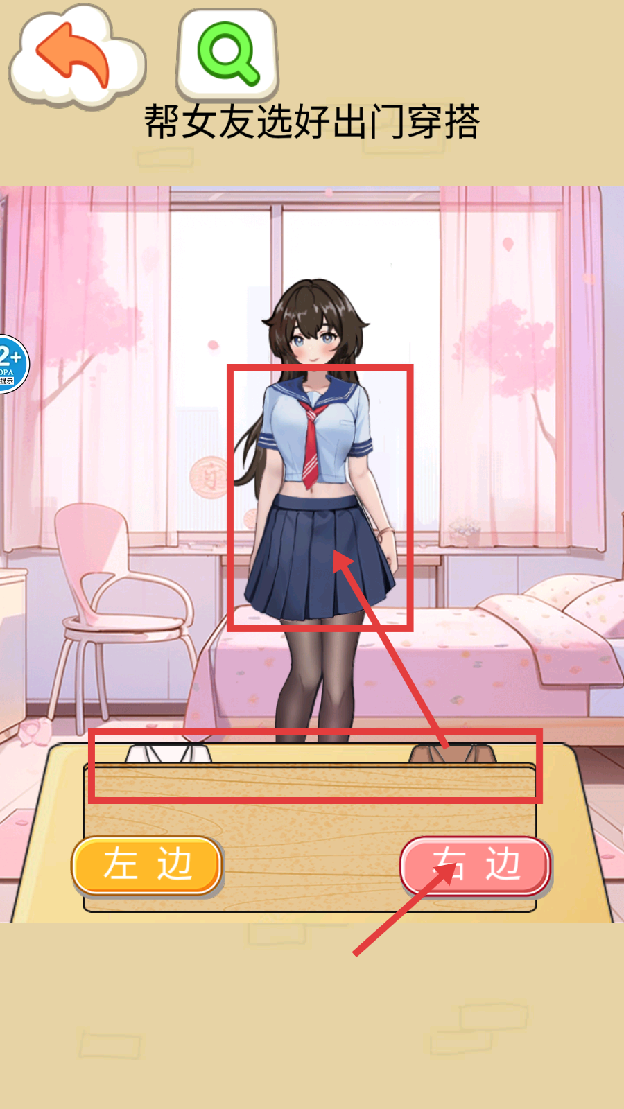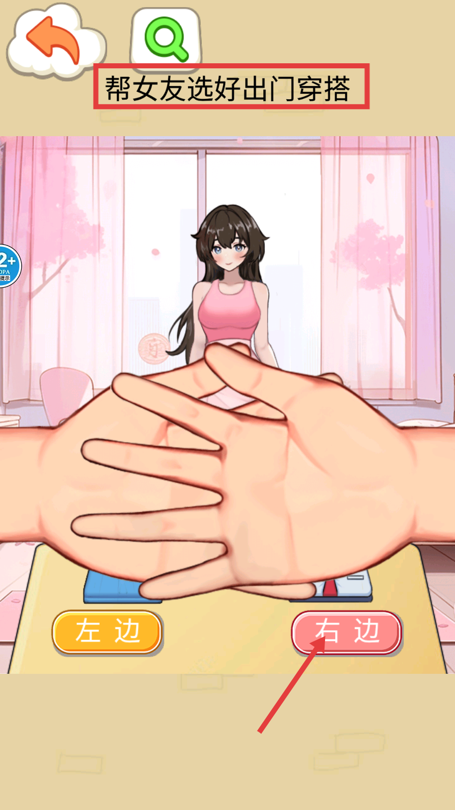2、在“帮女友选好出门穿搭”任务中,根据场景提示,点击【右边】按钮,为女友初步选择穿搭方向。
