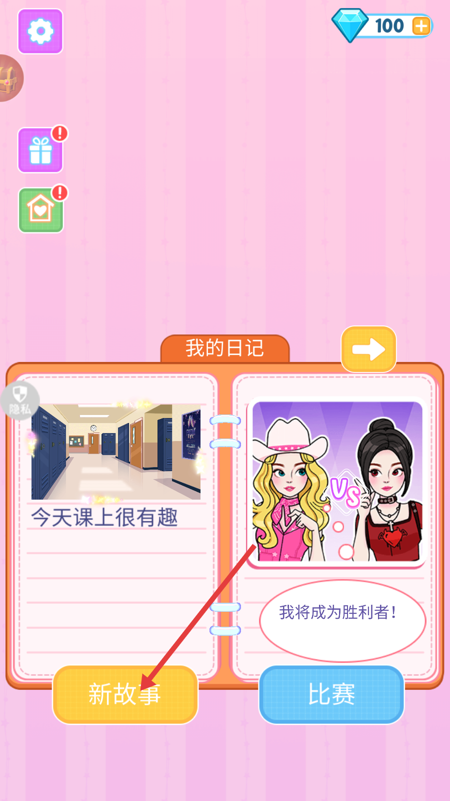 1、点击【新故事】按钮,开启日记里的新剧情,进入角色相关的故事挑战。