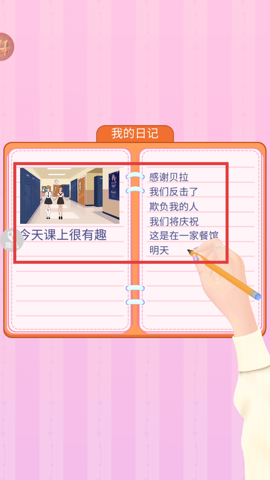 3、剧情推进后,日记中会记录【感谢贝拉-我们反击了欺负我的人-我们将庆祝】等内容,续写故事线。