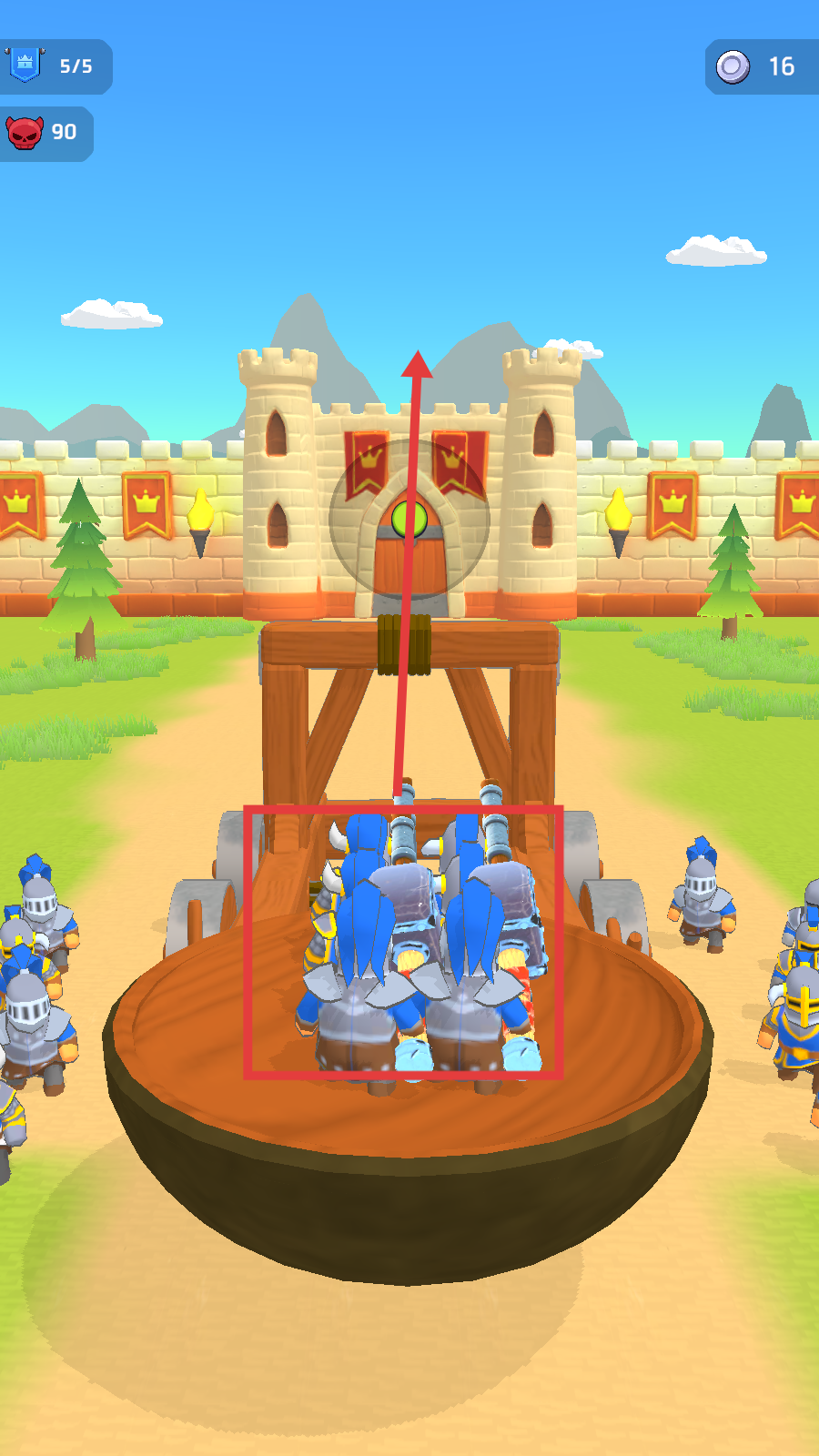 4、精准发射操作:通过控制发射角度和力度,将骑士准确射入城堡大门,完成关卡核心目标。