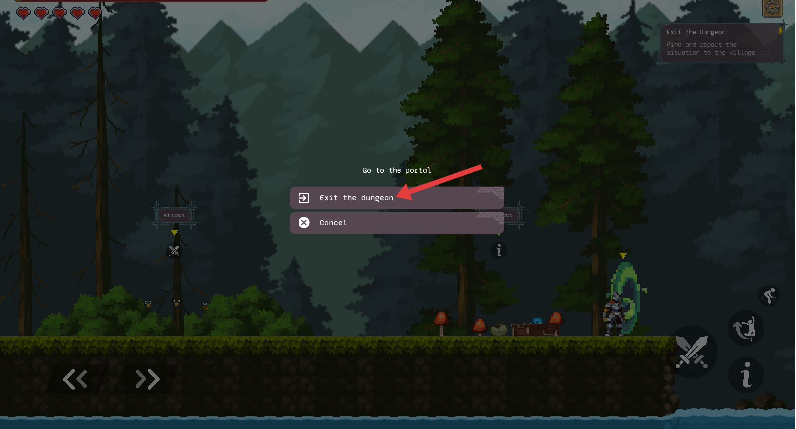 4、完成地牢内任务后,点击【Exitthedungeon】选项,通过传送门离开地牢,前往村庄汇报情况。