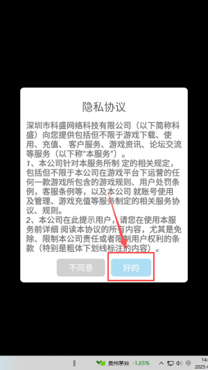 1、同意隐私协议。点击“好的”按钮,同意隐私协议。