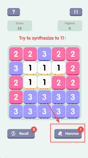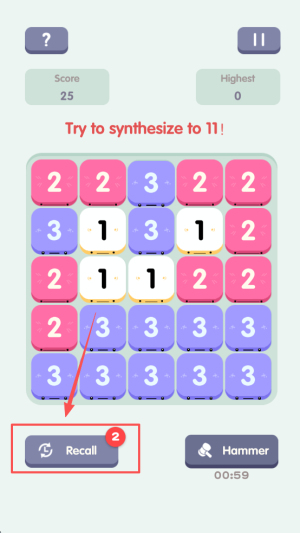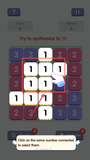 2、接着,点击相同数字进行选择,尝试合成到11。