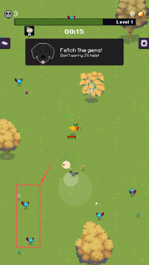 2、如何开始宝石收集关卡?在挑战界面点击“Fetch the gems!”按钮,系统会提示“Don’t worry, I’ll help!”,点击确认后即可开始收集宝石。