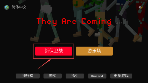 1、如何设置语言与进入主菜单?打开游戏后点击右上角语言选项选择“简体中文”,返回主界面可看到“新保卫战”“游乐场”“排行榜”等入口。