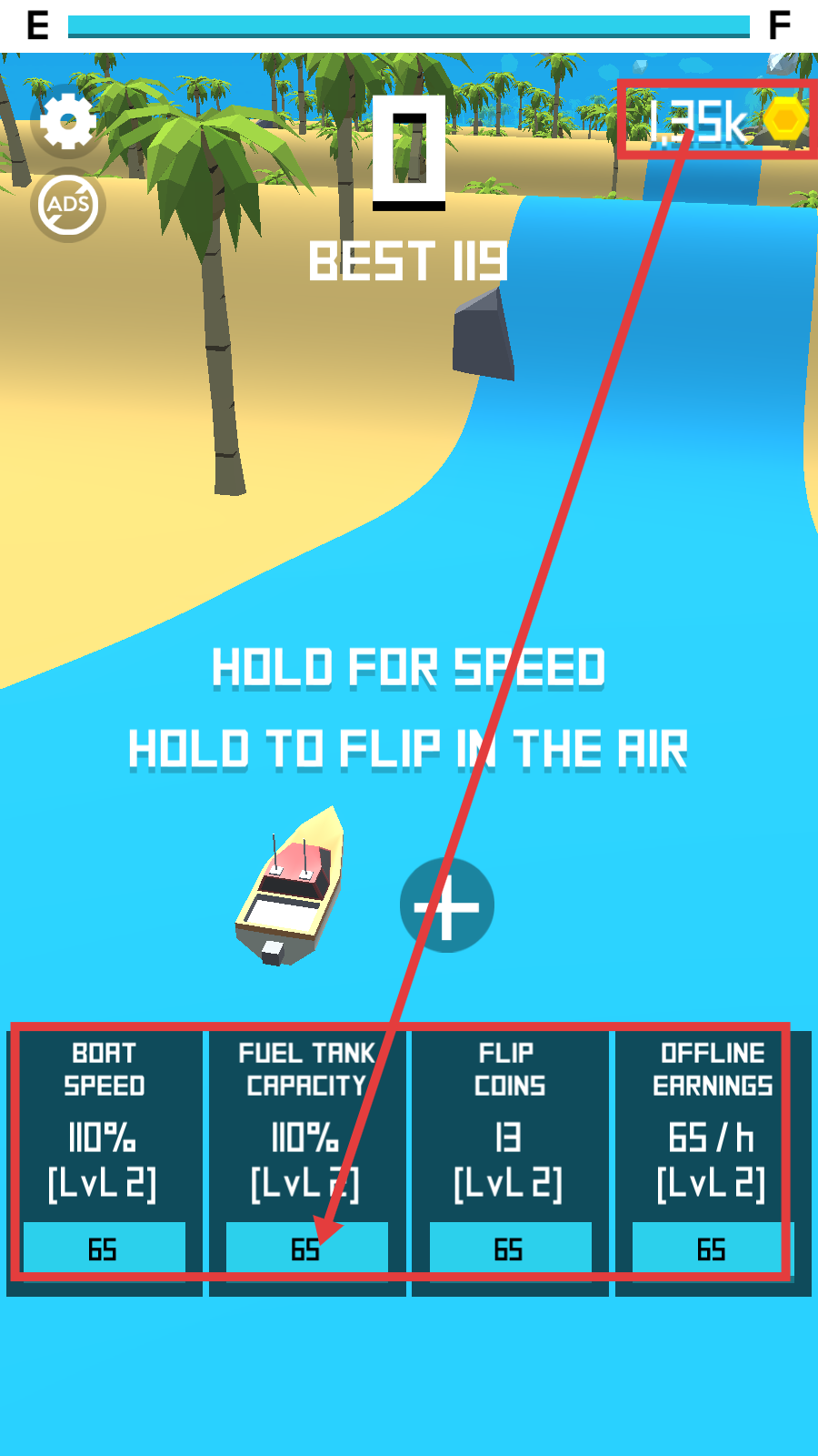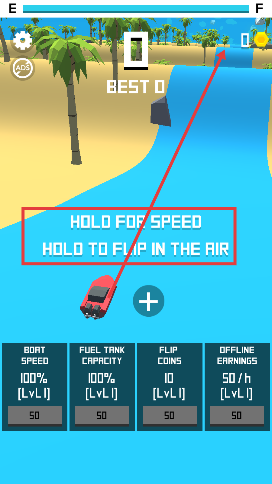 1、按住屏幕可让船只【HOLD-FOR-SPEED】,空中时按住还能【HOLD-TO-FLIP-IN-THE-AIR】,熟悉操作后出发。