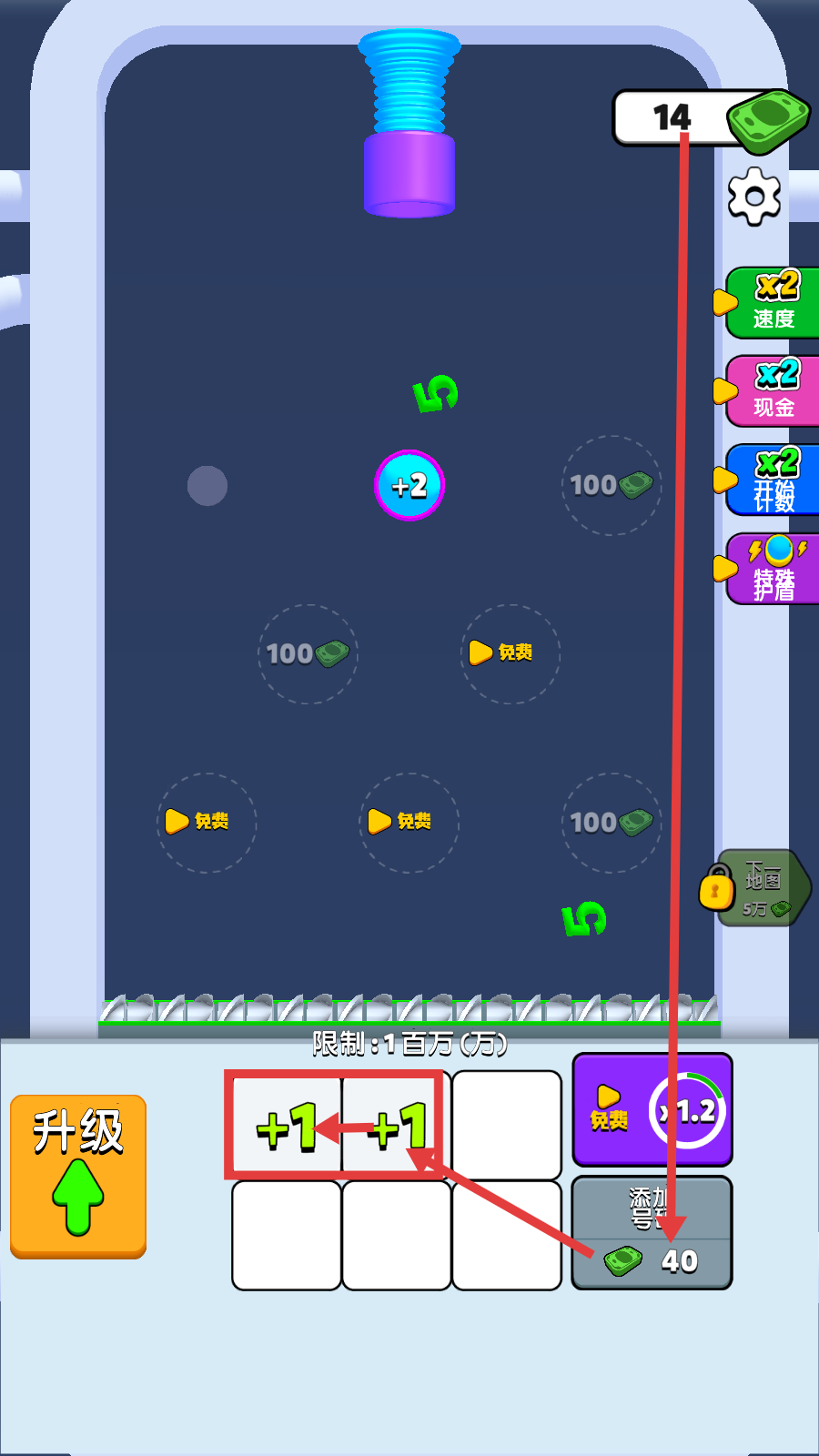 2、消耗资源点击【添加号码-40】,解锁底部【+1】格子,提升数字部件的合成与产出效率。