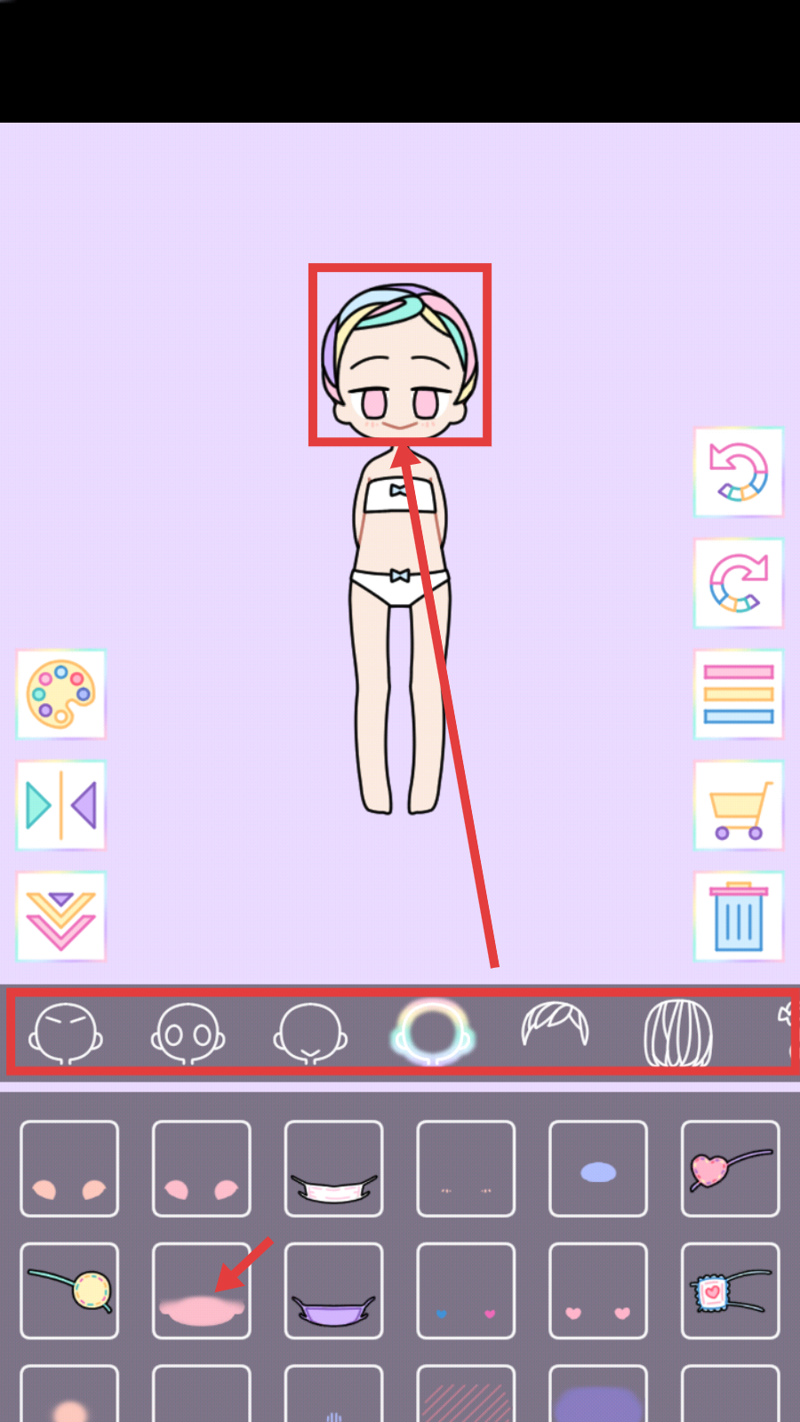 2、在装扮界面,从底部栏选取心仪的发型,再搭配脸部装饰,塑造角色基础模样。
