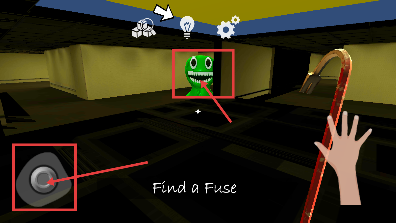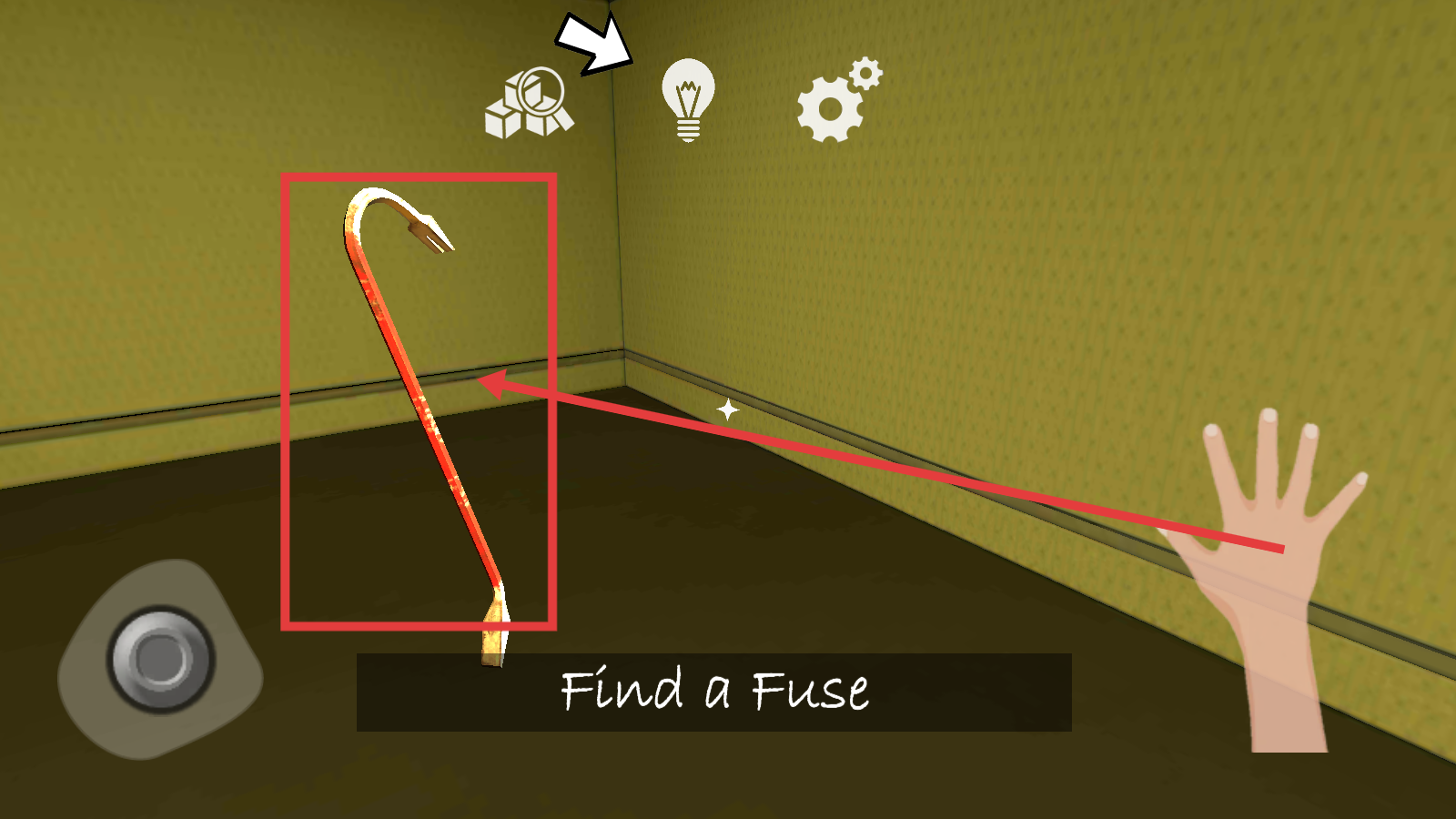 2、在房间中找到红色钩子道具,按照提示【FindaFuse】,开始寻找保险丝。